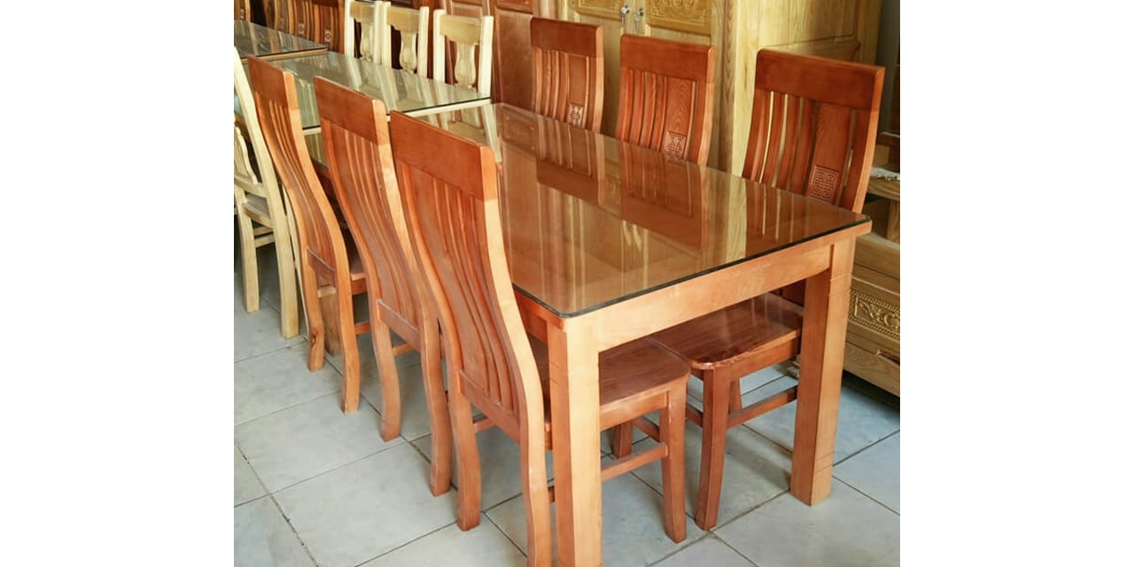 bàn kích thước: ngang 80cm dài 160cm cao 75cm có mặt kính 8mm